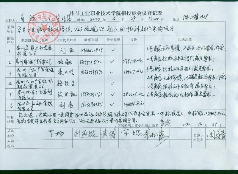 畢節(jié)工業(yè)職業(yè)技術(shù)學院VIS視覺識別系統(tǒng)物料制作采購項目第二中標候選人順延為第一中標候選人的公告
