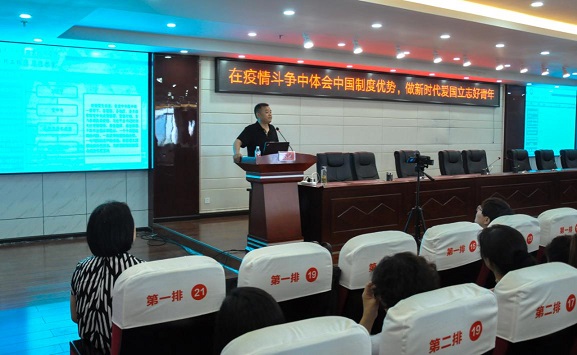 為加強(qiáng)學(xué)院思想政治工作,著力培養(yǎng)擔(dān)當(dāng)民族復(fù)興大任的時(shí)代新人,幫助青年學(xué)生從情感認(rèn)知升華為理性思考,進(jìn)一步增強(qiáng)打贏疫情防控阻擊戰(zhàn)的信心決心,2020年5月8日上午,學(xué)院黨委副書記、院長(zhǎng)邱國(guó)援為首批返回校園的學(xué)生上了一堂以“在疫情斗爭(zhēng)中體會(huì)中國(guó)制度優(yōu)勢(shì),做新時(shí)代愛國(guó)立志好青年”為主題的思政課。