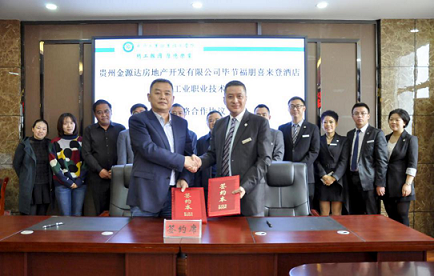 5月25日,畢節(jié)工業(yè)職業(yè)技術(shù)學(xué)院與畢節(jié)福朋喜來(lái)登酒店校企合作戰(zhàn)略協(xié)議簽訂儀式在學(xué)院同心樓三樓會(huì)議室舉行。學(xué)院黨委書記李涌、院長(zhǎng)邱國(guó)援、副院長(zhǎng)吳家文、招生就業(yè)處負(fù)責(zé)人孟天利、社會(huì)服務(wù)系負(fù)責(zé)人楊昌林及部分教師,畢節(jié)福朋喜來(lái)登酒店總經(jīng)理曾利平、房務(wù)經(jīng)理邵鍵、餐飲副總監(jiān)蔡林、行政管家項(xiàng)周金、銷售副總監(jiān)姚莉、人力資源副經(jīng)理李瓊一同出席本次簽約儀式。