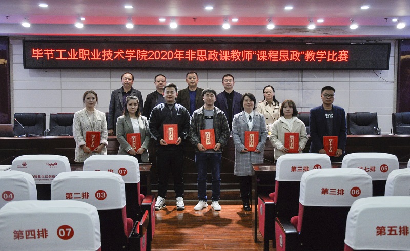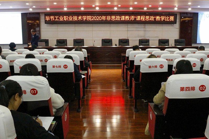 為深入學(xué)習(xí)貫徹習(xí)近平總書記關(guān)于教育的重要論述、全國教育大會精神,貫徹落實(shí)中共中央辦公廳、國務(wù)院辦公廳《關(guān)于深化新時代學(xué)校思想政治理論課改革創(chuàng)新的若干意見》《高等學(xué)校課程思政建設(shè)指導(dǎo)綱要》等文件精神,把思想政治教育貫穿人才培養(yǎng)體系,全面推進(jìn)學(xué)院課程思政建設(shè),發(fā)揮好每門課程的育人作用,提高學(xué)院人才培養(yǎng)質(zhì)量,培養(yǎng)擔(dān)當(dāng)民族復(fù)興大任的時代新人。2020年10月14日下午,畢節(jié)工業(yè)職業(yè)技術(shù)學(xué)院在行政樓9樓會議室舉行2020年非思政課教師"課程思政"教學(xué)比賽,全院教職工觀摩了比賽。