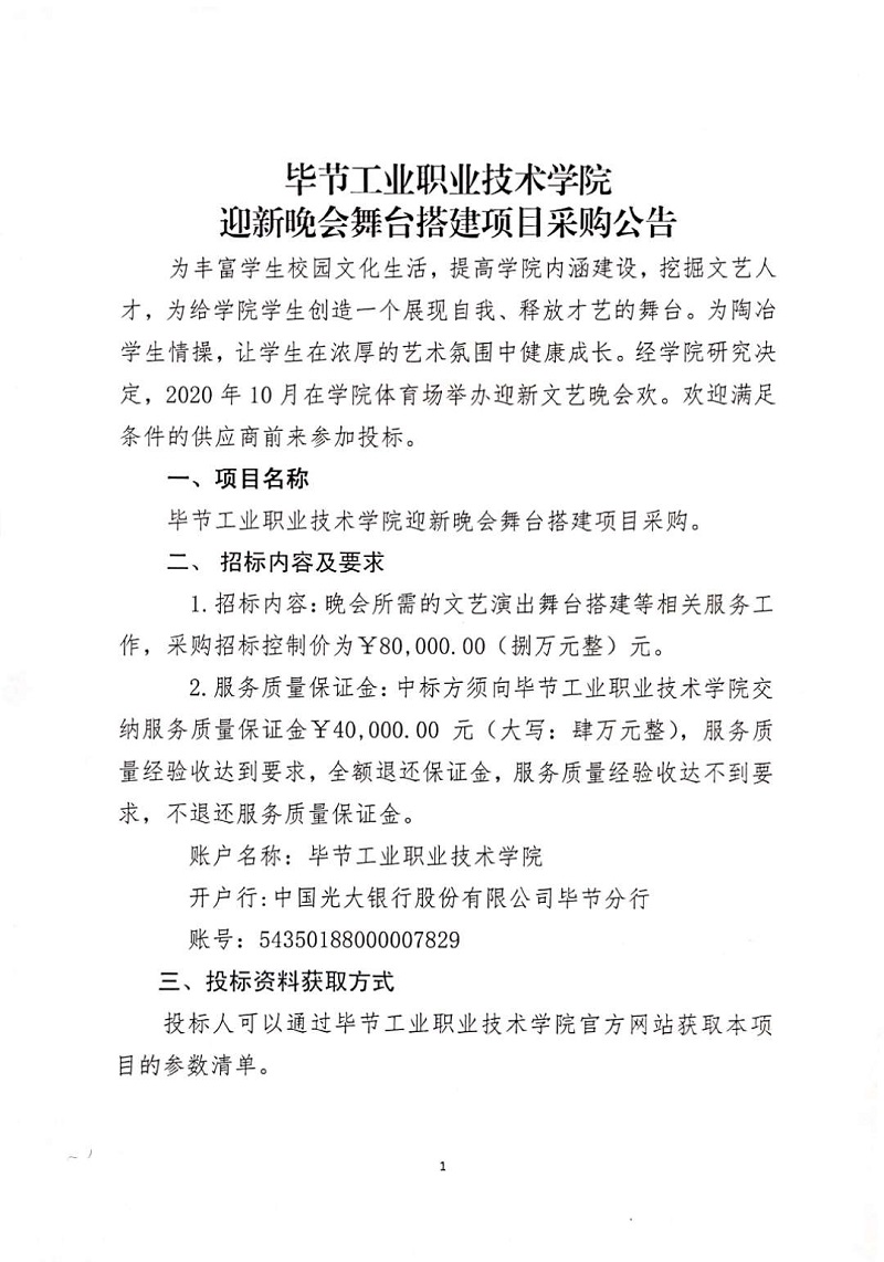 畢節(jié)工業(yè)職業(yè)技術(shù)學(xué)院 迎新晚會舞臺搭建項(xiàng)目采購公告