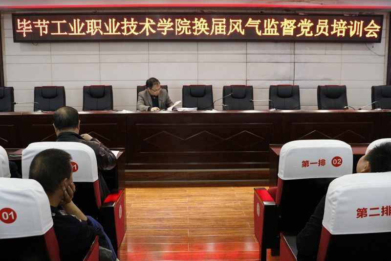 11月17日下午,畢節(jié)工業(yè)職業(yè)技術(shù)學(xué)院換屆風(fēng)氣監(jiān)督黨員培訓(xùn)會(huì)在九樓會(huì)議室召開(kāi),副縣級(jí)以上領(lǐng)導(dǎo)干部及全體黨員參加會(huì)議。