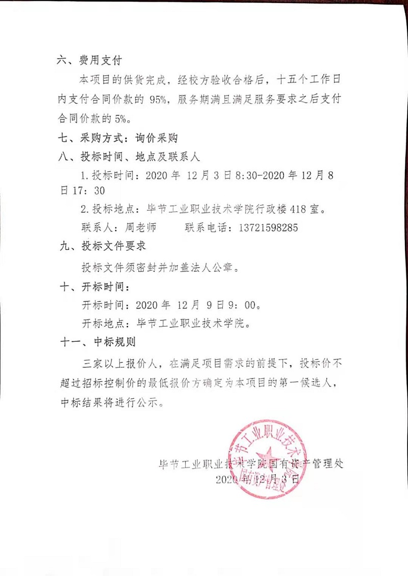 畢節(jié)工業(yè)職業(yè)技術(shù)學(xué)院監(jiān)控維修采購項目中標(biāo)公告