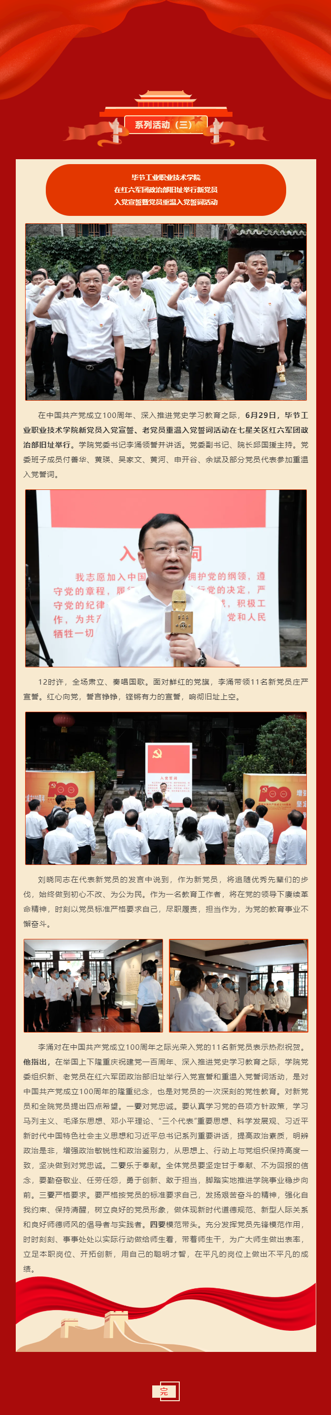 慶祝建黨100周年系列活動(dòng)(三) | 畢節(jié)工業(yè)職業(yè)技術(shù)學(xué)院在紅六軍團(tuán)政治部舊址舉行新黨員入黨宣誓暨黨員重溫入黨誓詞活動(dòng)