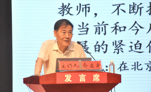 ▲國家職業(yè)教育研究院教授、北京師范大學(xué)教授俞啟定作“關(guān)于‘雙師型’教師的定位與培養(yǎng)問題探討”專題講座