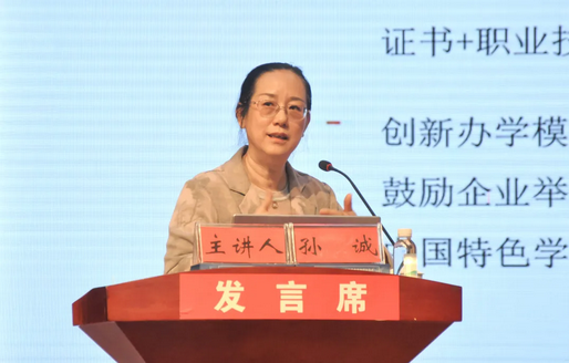 ▲中國教育科學(xué)研究院職業(yè)教育與繼續(xù)教育研究所所長孫誠作“新時期職業(yè)教育發(fā)展的時代背景、內(nèi)涵要義與建設(shè)路徑”專題講座