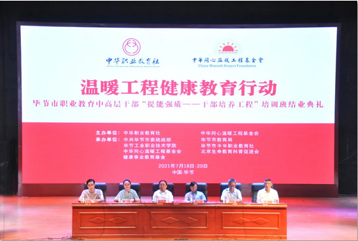 7月20日下午,畢節(jié)市職業(yè)教育中高層干部“提能強質(zhì)——干部培養(yǎng)工程”培訓(xùn)班結(jié)業(yè)典禮在我院會議中心舉行。中華同心溫暖工程基金會健康教育事業(yè)教育基金副主任吳昊洋,北京師范大學(xué)教授肖川,首都師范大學(xué)教授田漢族,北京生命教育科普促進會常務(wù)副會長兼秘書長曹專,畢節(jié)市教育局副局長朱德貴,畢節(jié)工業(yè)職業(yè)技術(shù)學(xué)院繼續(xù)教育部負責(zé)人閔宇航出席活動,全體參訓(xùn)學(xué)員300余人參加活動。結(jié)業(yè)典禮由畢節(jié)市中華職業(yè)教育社專職副主任夏青主持。