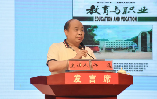 ▲人力資源和社會保障部職業(yè)技能鑒定中心研究員許遠作“新時代職業(yè)教育和技能人才培養(yǎng)熱點問題”專題講座