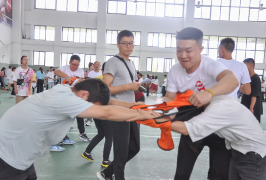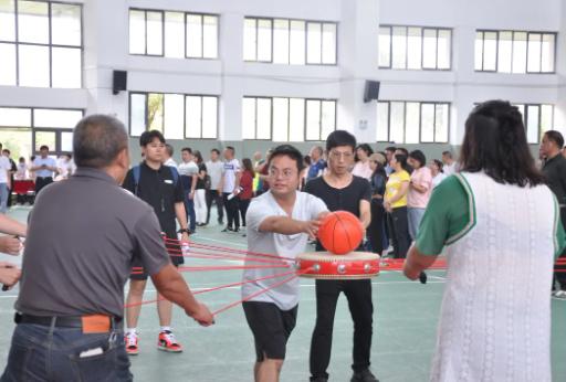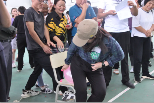 活動(dòng)共設(shè)置了連環(huán)穿衣、同心鼓、坐爆氣球和拔河四個(gè)項(xiàng)目,參與教師分為八個(gè)小組進(jìn)行比拼?,F(xiàn)場(chǎng)笑聲不斷,充滿了熱鬧的氣氛,歡呼聲、加油聲、吶喊聲此起彼伏。