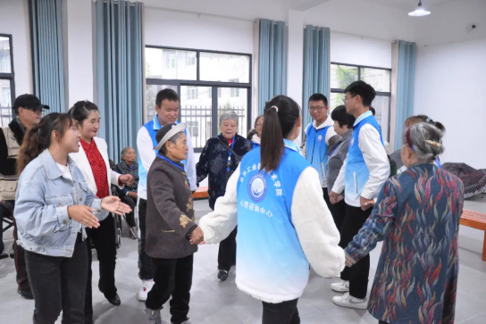 揭牌儀式后,學(xué)院心理咨詢中心周靜、龍錦春、李玉菊三名老師,以及抽調(diào)的“團(tuán)體心理輔導(dǎo)治愈力量"6名學(xué)生同老人們開展了一次團(tuán)體輔導(dǎo)活動,活動專門為老年人設(shè)計(jì),周全的顧慮到老年人的身心狀況,老人們在活動參與過程中分享了自己的心聲并參與了積極的談話。依托此次活動,心理咨詢中心的師生以積極心理學(xué)的原理激發(fā)了老人內(nèi)心世界的正能量,以達(dá)到治愈的作用。隨后三位老師分別為有需要的老人提供一對一的心理輔導(dǎo),聆聽他們的心聲,讓他們回味曾經(jīng)的驕傲,促進(jìn)了老人健康向上的心態(tài),養(yǎng)老中心的老人們紛紛表示度過了一個愉快而富有意義的重陽節(jié)。