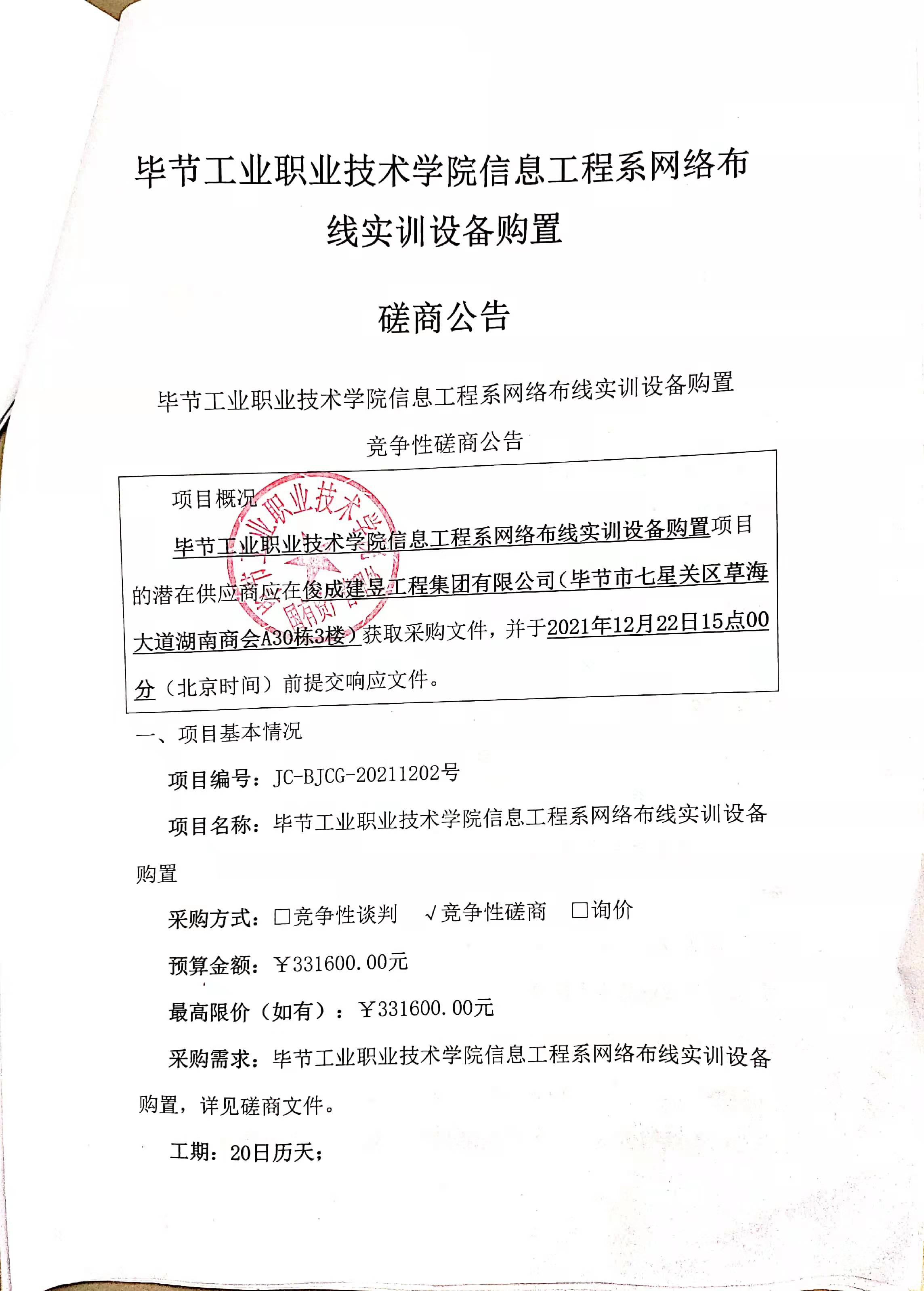 畢節(jié)工業(yè)職業(yè)技術(shù)學(xué)院信息工程系網(wǎng)絡(luò)布線實(shí)訓(xùn)設(shè)備購(gòu)置磋商公告