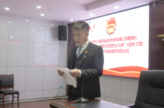 2021年12月16日畢節(jié)工業(yè)職業(yè)技術(shù)學(xué)院第三期團(tuán)校暨第三期“青馬工程”培訓(xùn)班在同心樓九樓會(huì)議室舉行開班儀式。學(xué)院黨委委員、副院長黃文碧,黨委委員、組織部部長申開谷,各系部團(tuán)總支負(fù)責(zé)人出席會(huì)議,院學(xué)生會(huì)主席團(tuán)成員、入黨積極分子、團(tuán)干、各系部優(yōu)秀學(xué)生代表共90余人參加開班儀式。開班儀式由團(tuán)委負(fù)責(zé)人伍紹平主持。