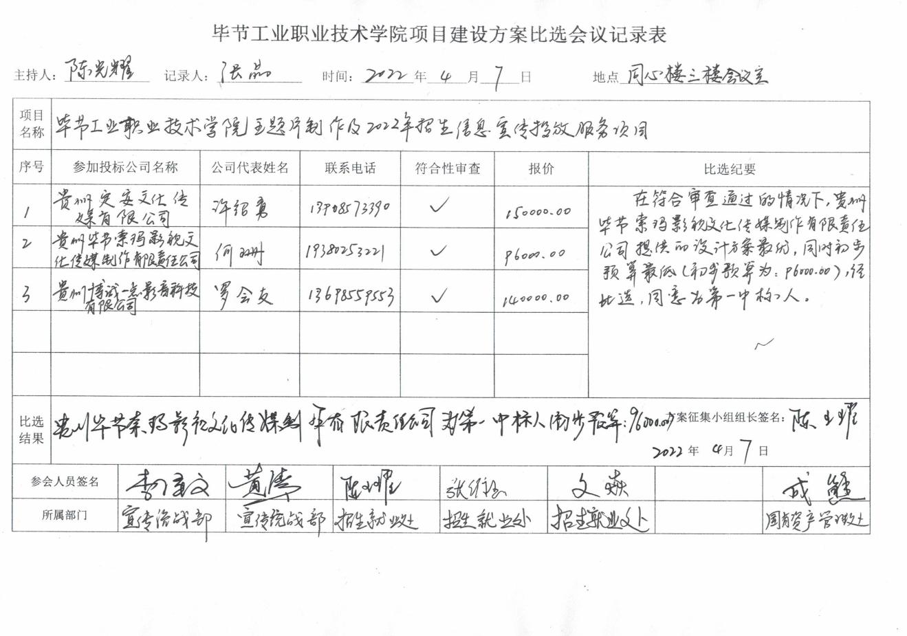 畢節(jié)工業(yè)職業(yè)技術(shù)學(xué)院主題片制作及2022年招生信息宣傳投放服務(wù)項(xiàng)目方案比選結(jié)果公示