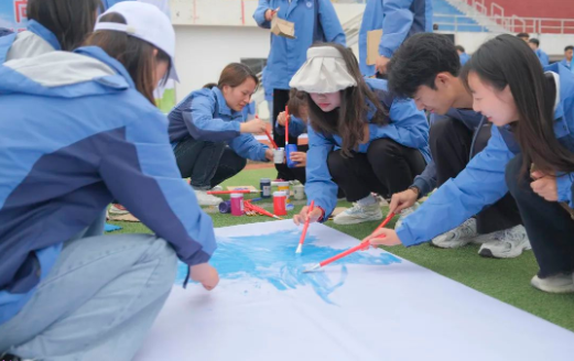 挑戰(zhàn)以班級(jí)為單位分為多個(gè)小組,將一幅完整的大型圖像根據(jù)小組數(shù)量拆分為多個(gè)部分,各小組分別抽取需要作畫部分進(jìn)行溝通創(chuàng)作,最后將小組作品按順序組合在一起,形成最終成品。