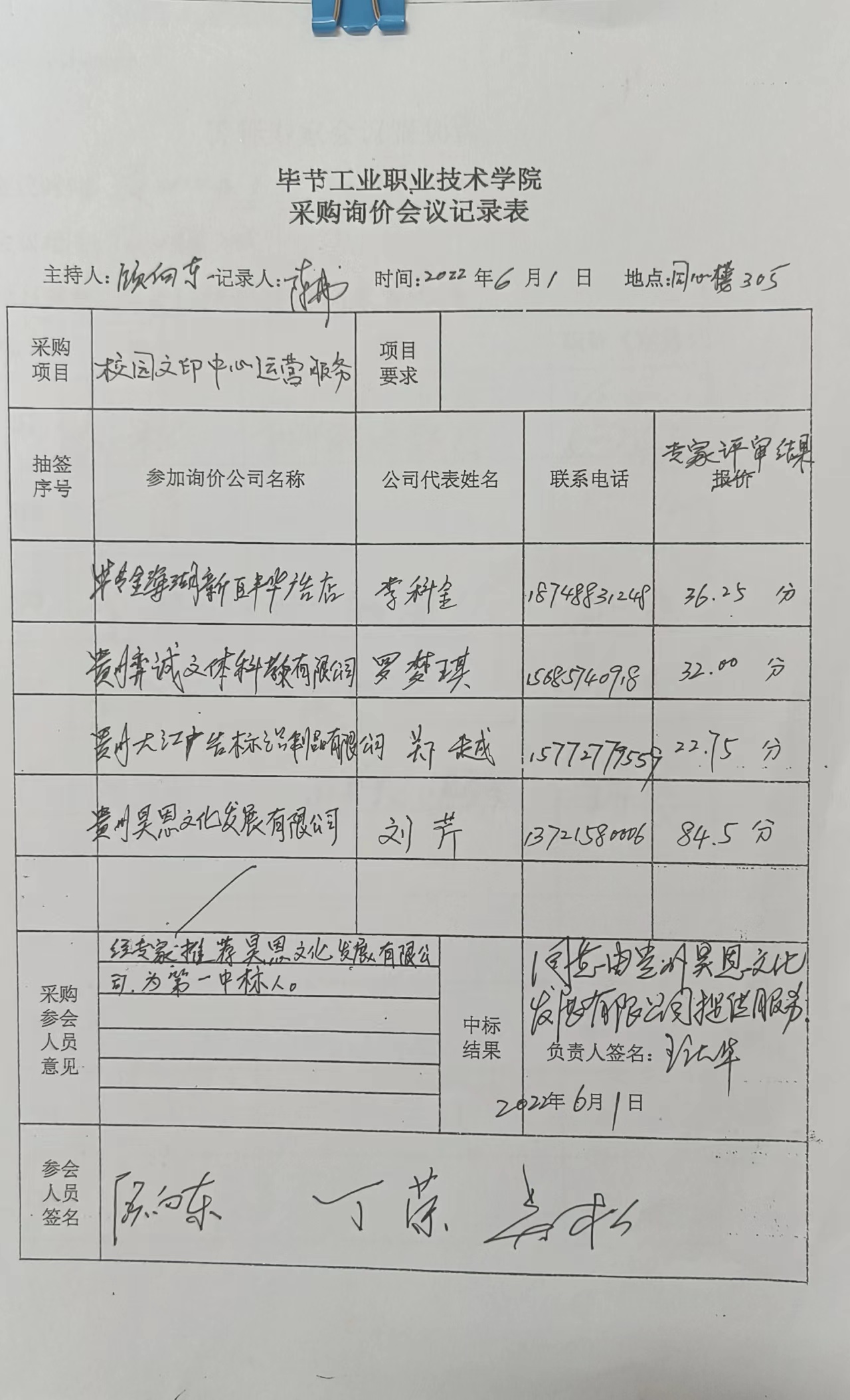畢節(jié)工業(yè)職業(yè)技術(shù)學(xué)院采購詢價會議記錄表公示