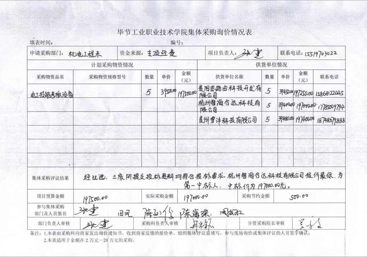 畢節(jié)工業(yè)職業(yè)技術(shù)學(xué)院電工技能考核設(shè)備集體采購詢價(jià)情況表公示