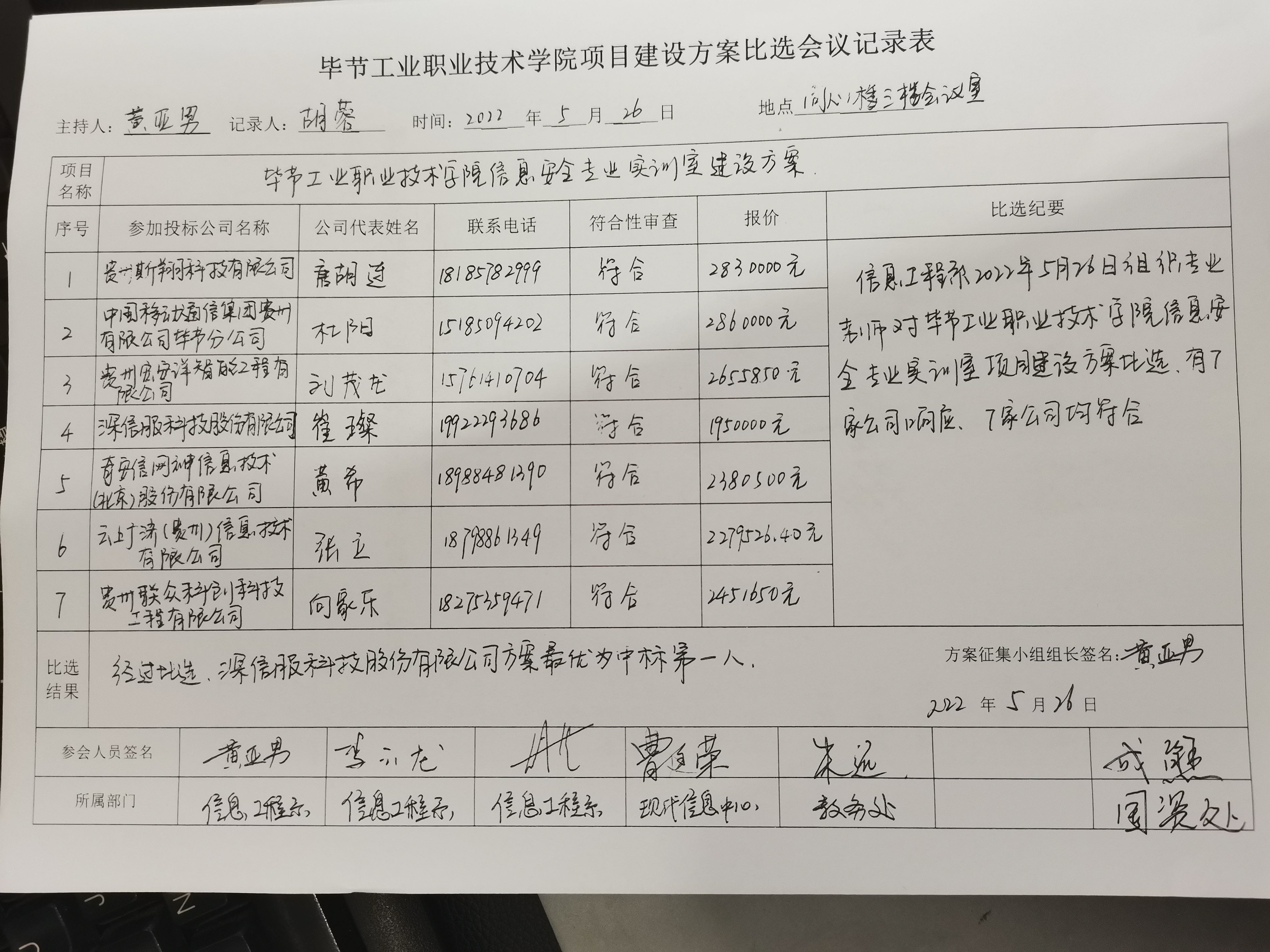 畢節(jié)工業(yè)職業(yè)技術(shù)學院信息安全專業(yè)實訓室建設(shè)項目征集方案比選結(jié)果公示