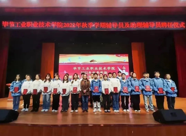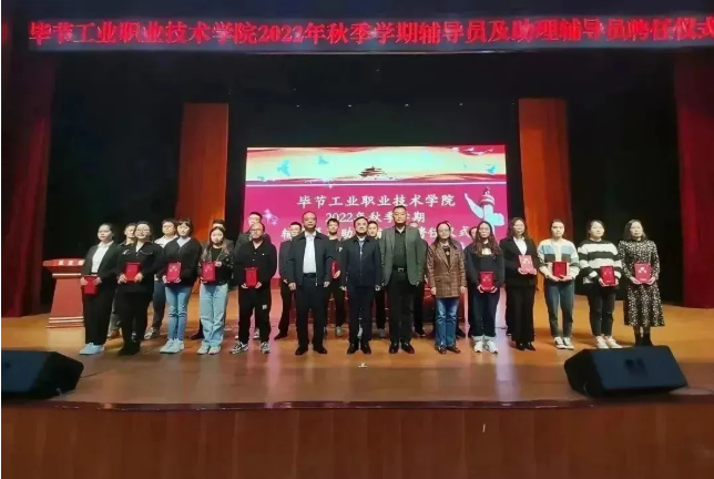 2022年11月10日,畢節(jié)工業(yè)職業(yè)技術(shù)學(xué)院輔導(dǎo)員及助理輔導(dǎo)員聘任儀式在會(huì)議中心舉行。學(xué)院黨委書(shū)記李涌,黨委副書(shū)記、院長(zhǎng)邱國(guó)援,黨委副書(shū)記付善華,黨委委員、副院長(zhǎng)黃文碧出席會(huì)議。會(huì)議由黃文碧主持。