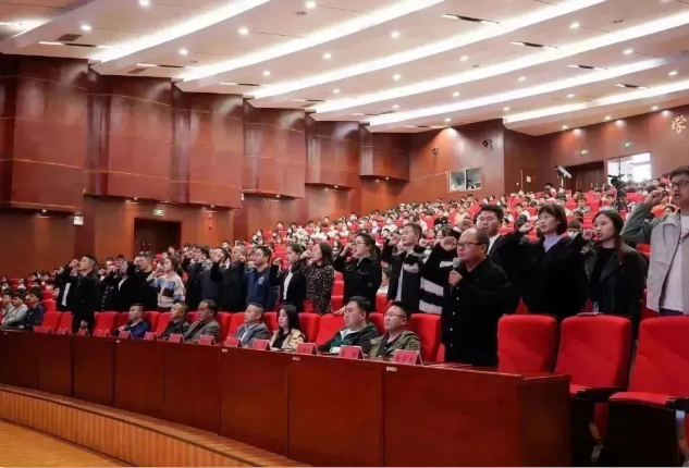 會(huì)議在雄壯的國(guó)歌聲中拉開(kāi)帷幕,會(huì)上,出席領(lǐng)導(dǎo)為21名輔導(dǎo)員和54名助理輔導(dǎo)員頒發(fā)了聘任證書(shū),21名輔導(dǎo)員進(jìn)行了集體宣誓。助理輔導(dǎo)員代表張莉,輔導(dǎo)員代表付琴分別作交流發(fā)言。