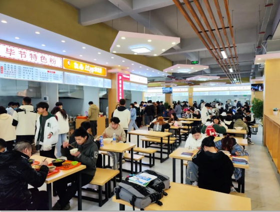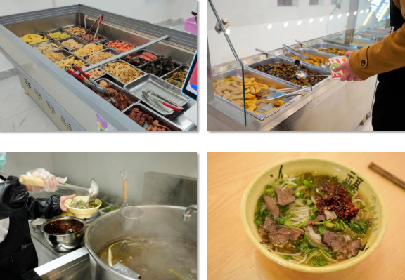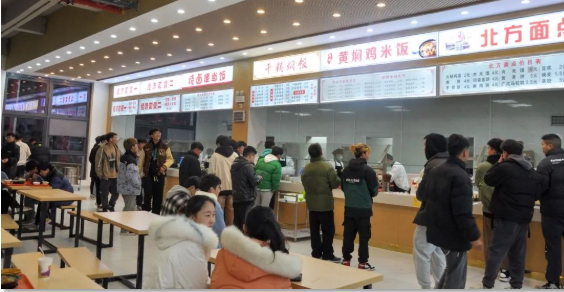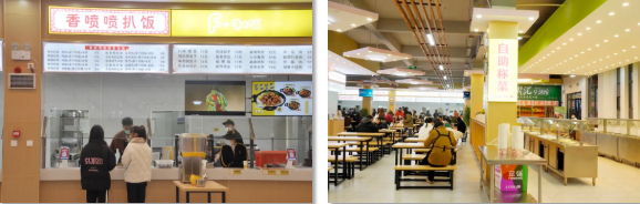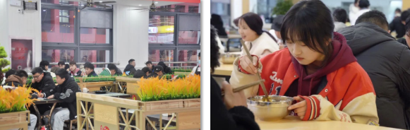 這里有 寬敞的空間 典雅的桌椅 潔凈的地面 可口的飯菜 羊肉粉 炒飯 自助餐 奶茶 水果 甜點(diǎn) 在這里 你總能找到 讓你充滿食欲的那份美味 走進(jìn)新食堂 小編隨機(jī)采訪了幾位就餐的同學(xué) 大家都對新食堂表示滿意 “我們的新食堂 顏值高 味道好 從今天起 我再也不羨慕別人家的食堂了” “學(xué)校為我們提供了新的就餐選擇 讓我和同學(xué)又有了約飯新去處” “簡直就是我們這種‘干飯人’的福音” 新食堂帶給了學(xué)院新的活力 帶給了同學(xué)們更好的就餐條件 同學(xué)們 在等什么 還不快來體驗一下!
