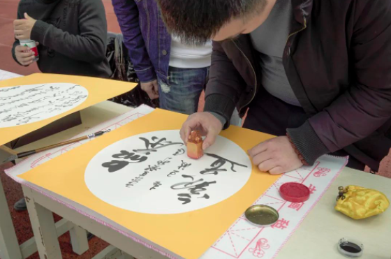 靜心提筆于身前 書香墨香飄校園 行云落筆如云煙 青春頌黨定筆尖