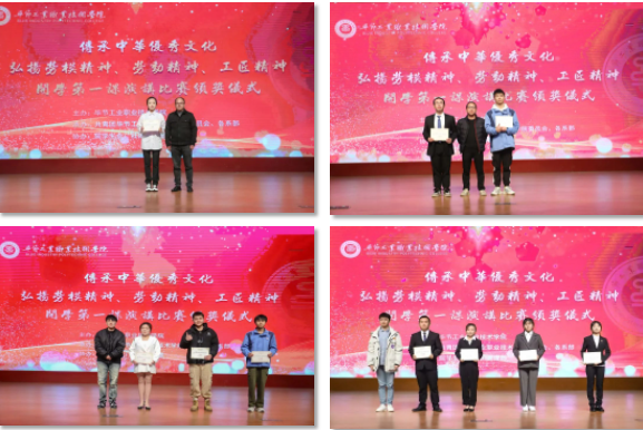 比賽現(xiàn)場,十二位參賽選手緊扣活動主題,結(jié)合自身學(xué)習(xí)心得體會,用質(zhì)樸的語言、飽滿的熱情、真摯的情感從不同角度詮釋了勞模精神、勞動精神、工匠精神,激勵和鼓舞同學(xué)們積極投身全面建設(shè)社會主義現(xiàn)代化國家的偉大實(shí)踐。各位選手言辭流利、妙語連珠,現(xiàn)場精彩的演講贏得了評委和觀眾們的陣陣掌聲。 經(jīng)過激烈角逐,評委組從演講內(nèi)容、語言表達(dá)、形象風(fēng)度、綜合印象、會場效果等方面對參賽選手的演講進(jìn)行了評分,評選出一、二、三等獎及優(yōu)秀獎,機(jī)電汽車工程系獲得優(yōu)秀組織獎。隨即舉行了頒獎儀式。 據(jù)悉,此次比賽獲得前三名的選手將代表學(xué)院參加省級比賽,預(yù)祝他們?nèi)〉昧己玫某煽儯?/p>