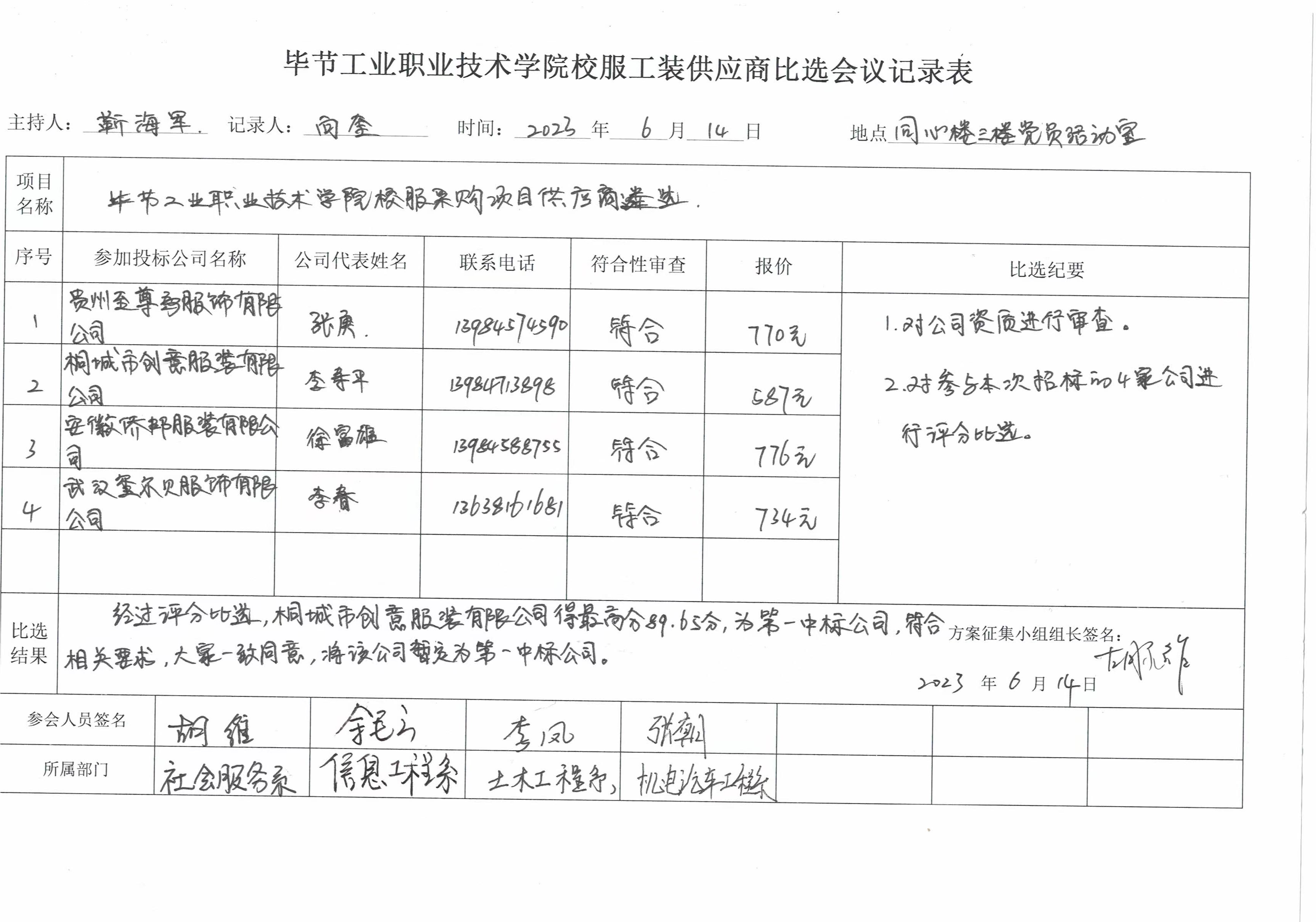 畢節(jié)工業(yè)職業(yè)技術(shù)學(xué)院校服采購項(xiàng)目供應(yīng)商遴選中標(biāo)公告