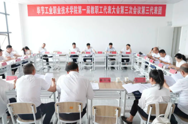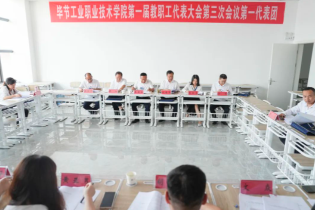 大會還聽取了《畢節(jié)工業(yè)職業(yè)技術(shù)學(xué)院2022年財務(wù)預(yù)算執(zhí)行情況和2023年財務(wù)預(yù)算情況報告》《畢節(jié)工業(yè)職業(yè)技術(shù)學(xué)院工會工作報告》《畢節(jié)工業(yè)職業(yè)技術(shù)學(xué)院第一屆第二次教職工代表大會提案落實情況及第一屆第三次教職工代表大會提案征情況報告》,審議了《畢節(jié)工業(yè)職業(yè)技術(shù)學(xué)院專業(yè)技術(shù)職務(wù)評聘管理暫行辦法》《畢節(jié)工業(yè)職業(yè)技術(shù)學(xué)院年度部門綜合考核實施方案》。期間,三個代表團(tuán)與會代表紛紛以高度的責(zé)任感和飽滿的主人翁精神,緊緊圍繞中心工作,對大會相關(guān)《報告》《辦法》《方案》及相關(guān)《決議(草案)》進(jìn)行認(rèn)真討論和審議,提出修改意見和建議,積極為學(xué)院發(fā)展建言獻(xiàn)策。