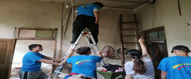 改造完成后,燈泡亮起來的瞬間,看著吳貴祥一家人以及實踐隊隊員臉上開心、滿意的笑容,這幾天疲勞感瞬間消失了。隔壁老奶奶對我們說:“我想給你們提一件牛奶,又怕你們不肯收,我知道你們不拿群眾的東西。”我們說:能得到您們的認可,能為大家做實事,我們這支服務隊也值了。”
