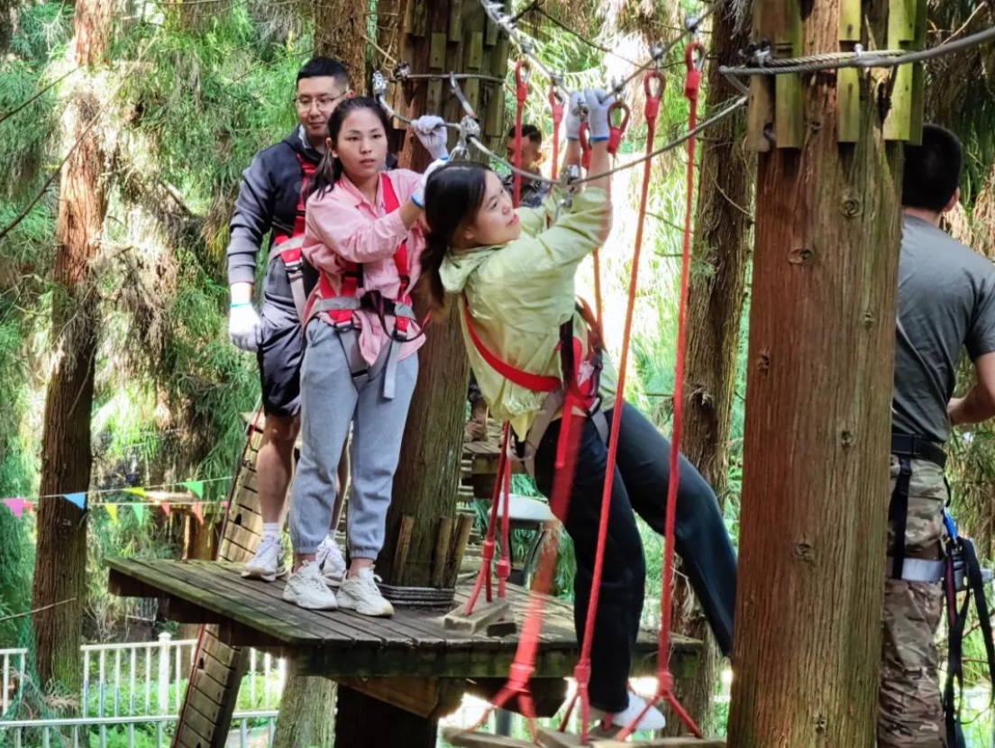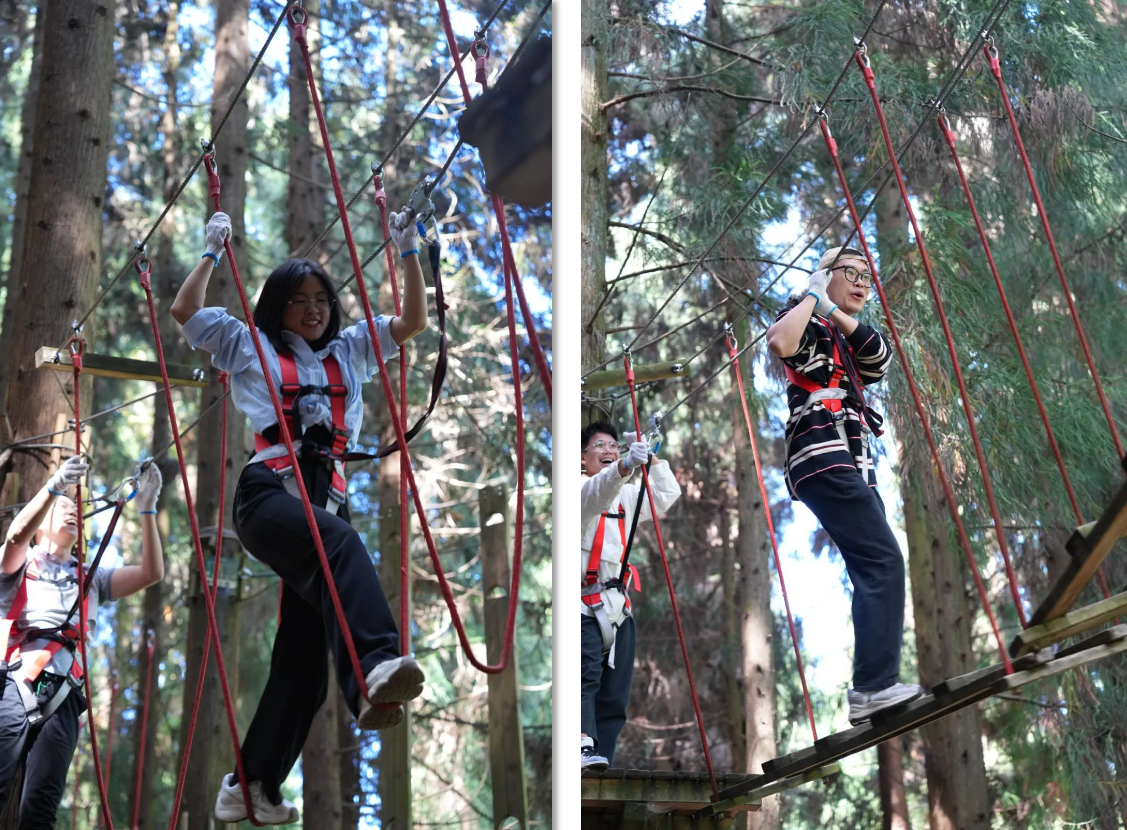 活動(dòng)項(xiàng)目豐富多樣,現(xiàn)場氣氛歡快,活動(dòng)前,工作人員向大家詳細(xì)介紹了規(guī)則和項(xiàng)目內(nèi)容,老師們共同商討研究,信心滿滿、蓄勢待發(fā)。破冰訓(xùn)練、彩虹滑道、叢林穿越等一系列充滿刺激挑戰(zhàn)的團(tuán)隊(duì)游戲和互動(dòng),使得教師們在愉悅的情緒下彼此更加親近。
