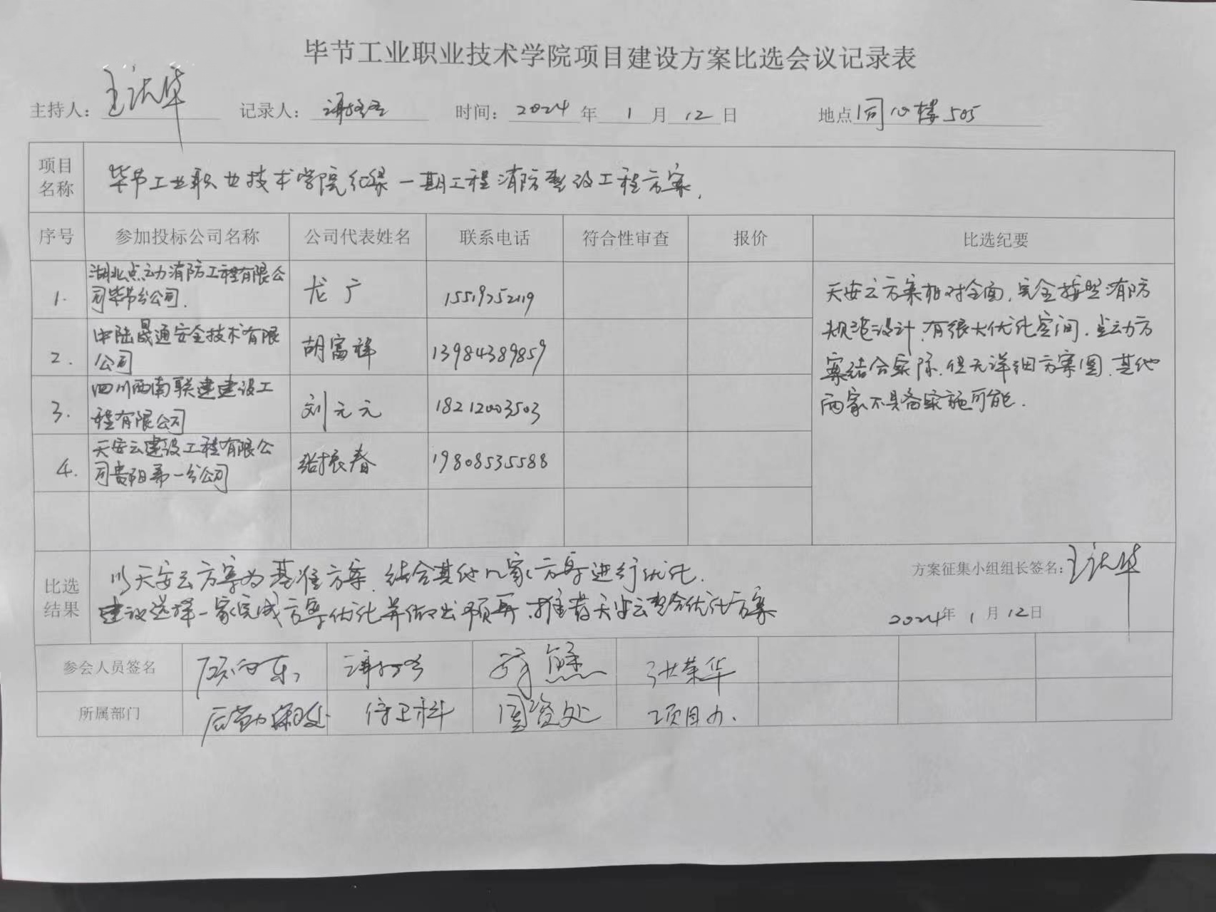 畢節(jié)工業(yè)職業(yè)技術(shù)學(xué)院征集一期工程消防整改工程方案比選結(jié)果公示