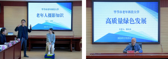 3月25日,“畢節(jié)市老年科技大學(xué)”掛牌儀式在畢節(jié)工業(yè)職業(yè)技術(shù)學(xué)院舉行。貴州省老科學(xué)技術(shù)工作者協(xié)會副會長、畢節(jié)市老科學(xué)技術(shù)工作者協(xié)會會長李克明,貴州省老科學(xué)技術(shù)工作者協(xié)會科學(xué)普及與教育專門委員會委員、畢節(jié)市老科協(xié)副會長、畢節(jié)市老年科技大學(xué)校長李瓊,畢節(jié)市科學(xué)技術(shù)協(xié)會副主席羅麗;學(xué)院黨委書記李涌,黨委副書記、院長邱國援出席儀式,學(xué)院領(lǐng)導(dǎo)班子成員及相關(guān)部門負(fù)責(zé)人20余人參加儀式。儀式由李瓊主持。 李克明在會上表示,掛牌成立畢節(jié)市老年科技大學(xué)是提升我市老年人科學(xué)素質(zhì),切實有力推動科技為民服務(wù)的客觀需要,標(biāo)志著我市科技教育和老年教育的融合發(fā)展,開啟了我市對老年人開展繼續(xù)教育和科普培訓(xùn)的新征程。老年科技大學(xué)要堅持以提升老年人的科學(xué)素養(yǎng)、健康素質(zhì)、數(shù)字技能等為目標(biāo),進(jìn)一步擴(kuò)大老年教育資源供給,助力科學(xué)普及,推動科技為民服務(wù),為建設(shè)新發(fā)展理念示范區(qū)、譜寫中國式現(xiàn)代化畢節(jié)實踐新篇章貢獻(xiàn)智慧和力量。 授牌儀式結(jié)束后,市老年科技大學(xué)副校長文勁松、市老科學(xué)技術(shù)工作者協(xié)會智庫專家曾慶良分別開展了《老年人攝影知識》和《高質(zhì)量綠色發(fā)展》現(xiàn)場授課。