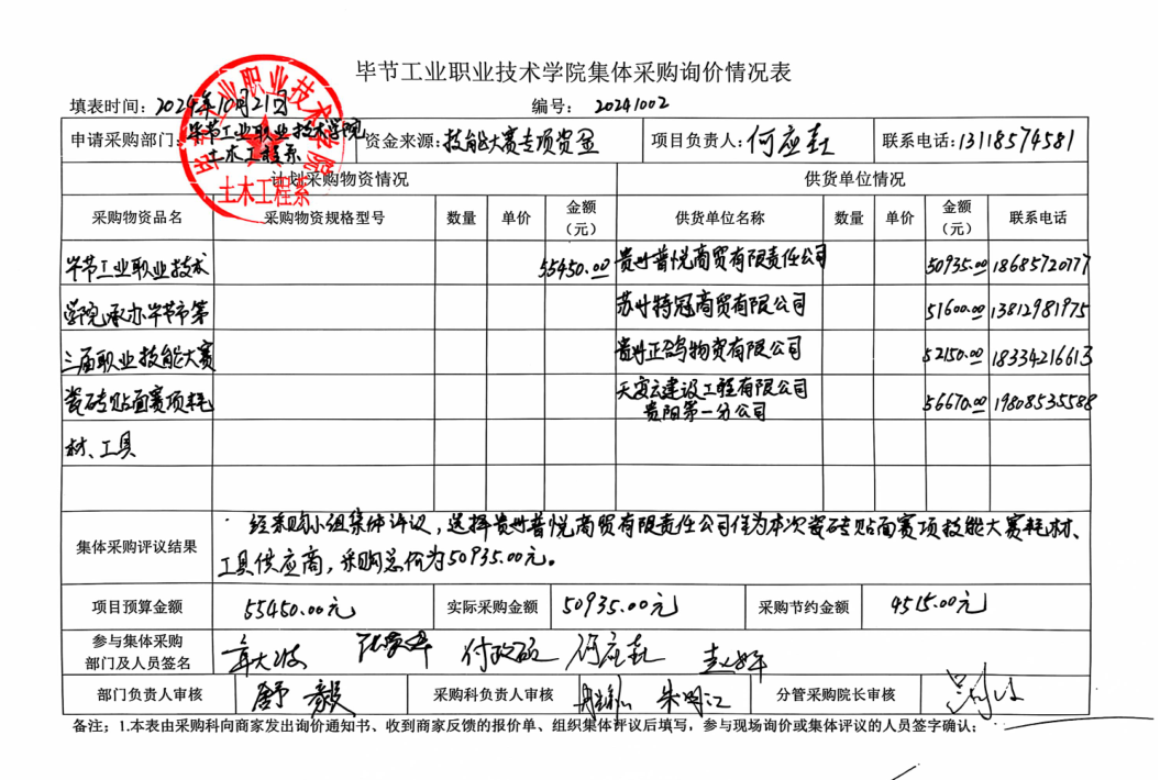 土木工程系承辦畢節(jié)市人社局第三屆職業(yè)技能大賽瓷磚貼面賽項(xiàng)耗材、工具詢(xún)價(jià)情況公告