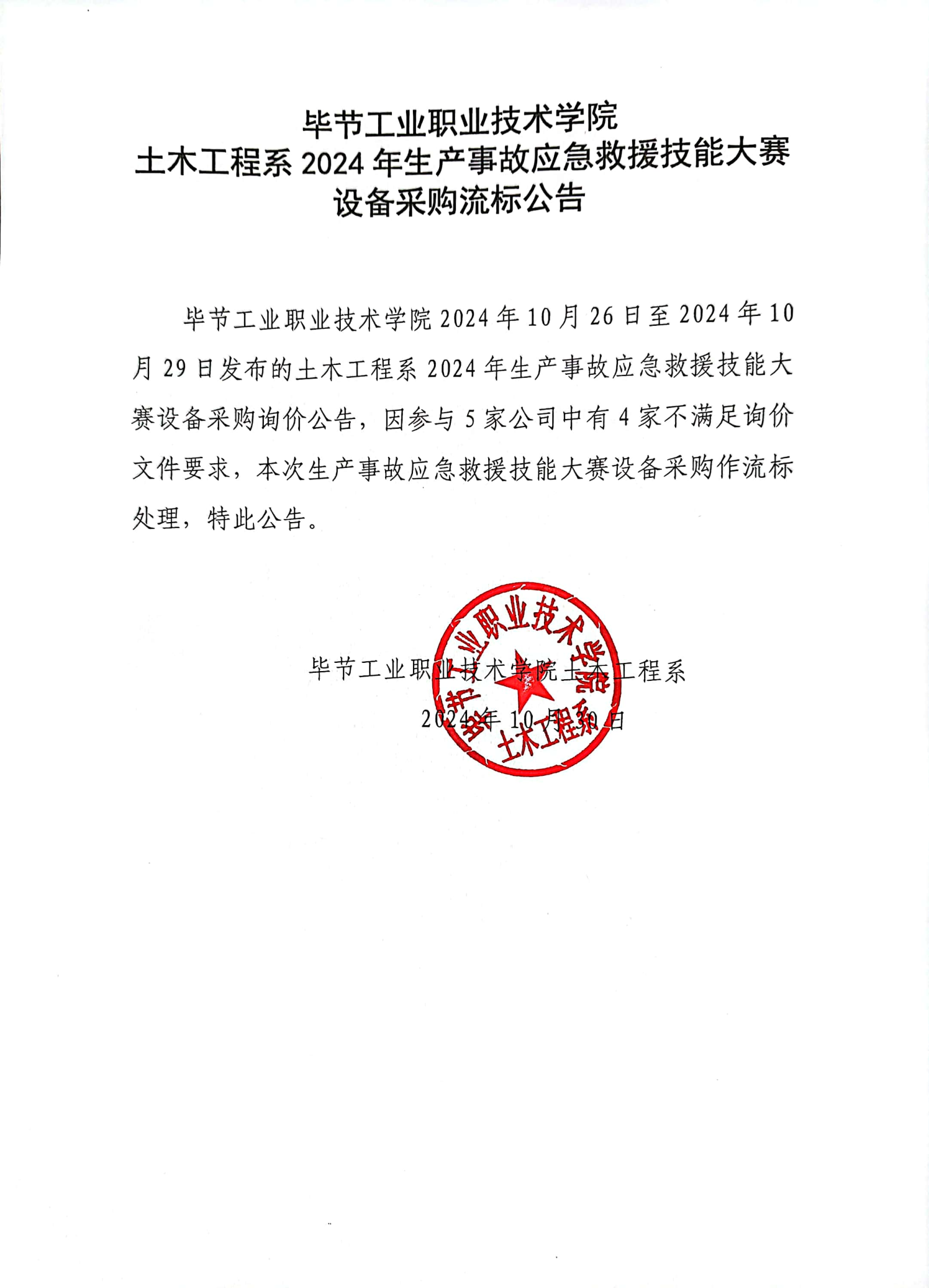 畢節(jié)工業(yè)職業(yè)技術(shù)學院土木工程系2024年生產(chǎn)事故應(yīng)急救援技能大賽設(shè)備采購流標公告