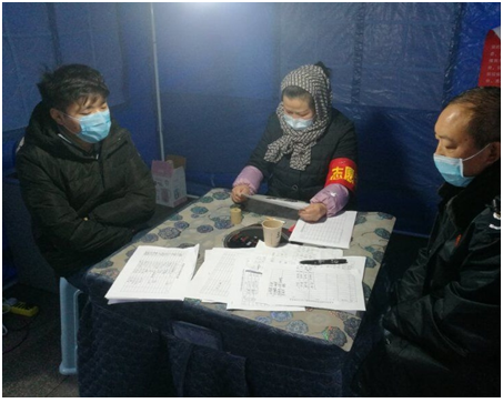 (圖4:信息工程系教師李云龍在麻園街道麻園社區(qū)執(zhí)勤點參與排查登記來往人員)