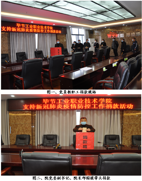 為積極應(yīng)對(duì)新冠肺炎疫情,全力支持當(dāng)前疫情防控,堅(jiān)決打贏疫情防控阻擊戰(zhàn),3月2日,畢節(jié)工業(yè)職業(yè)技術(shù)學(xué)院組織開展支持疫情防控捐款活動(dòng),本次捐款共計(jì)17700元。