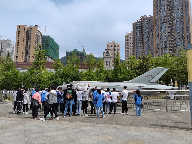 隨后,同學(xué)們又參觀了中國研制的單座雙發(fā)動(dòng)機(jī)超音速強(qiáng)5-強(qiáng)擊機(jī),通過聽取解說和近距離接觸,對中國強(qiáng)擊機(jī)的發(fā)展史有了一定的了解收獲。