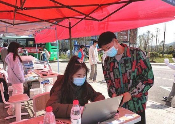數(shù)名志愿者堅(jiān)守在校園各個點(diǎn)位