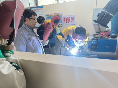 活動采用一對一的傳授形式,魏鈞師傅針對參訓學生的實際情況進行針對性指導?;顒觾热莅ê附永碚搶W習、實際操作演示、親手操作練習等環(huán)節(jié),一是焊接理論學習。導師向參訓人員講解焊接的基本原理、操作規(guī)范及安全注意事項。二是實際操作演示。導師現(xiàn)場演示焊接操作流程,展示優(yōu)秀焊接作品,并分析常見問題及解決方案。三是親手操作練習。參訓人員在導師的指導下進行實際操作練習,導師根據參訓人員的表現(xiàn)進行點評與指導。