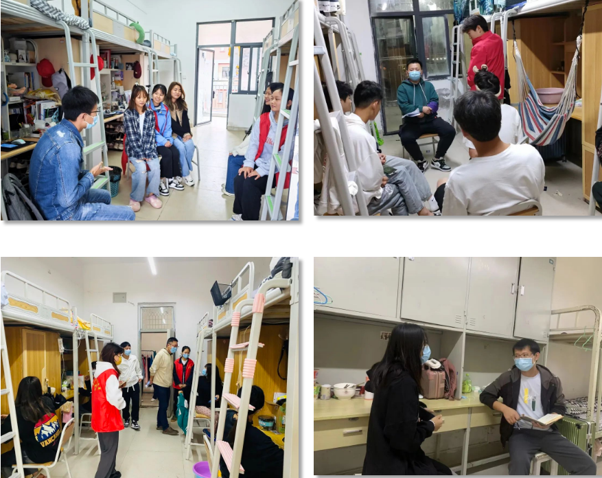 在靜默管理期間,學(xué)院領(lǐng)導(dǎo)、教師深入學(xué)生宿舍了解靜默管理期間學(xué)生思想動(dòng)態(tài)及學(xué)習(xí)生活情況。囑咐同學(xué)們嚴(yán)格遵守靜默管理期間各項(xiàng)防控措施,做好個(gè)人防護(hù)。 停課不停教,停課不停學(xué)
