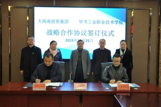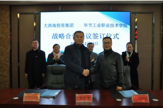 智慧共生,合作共贏。為深入貫徹《國家職業(yè)教育改革實(shí)施方案》,加強(qiáng)校企合作、人才培養(yǎng)和培訓(xùn),2019年12月25日,畢節(jié)工業(yè)職業(yè)技術(shù)學(xué)院與大西南投資集團(tuán)有限責(zé)任公司校企合作戰(zhàn)略協(xié)議簽訂儀式在學(xué)院同心樓三樓會議室正式舉行。