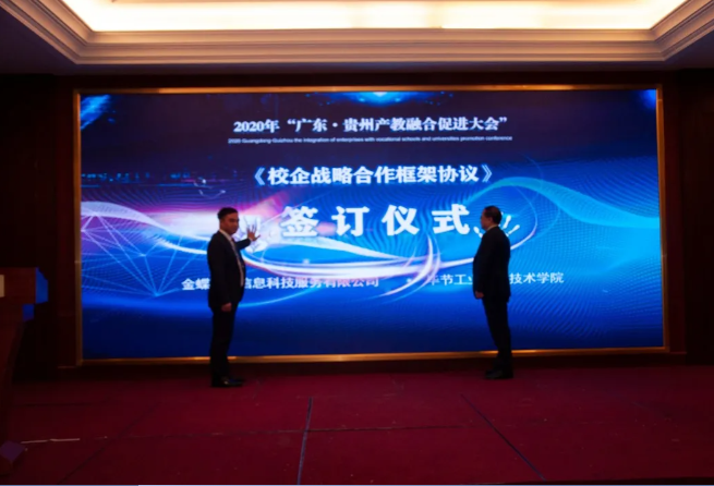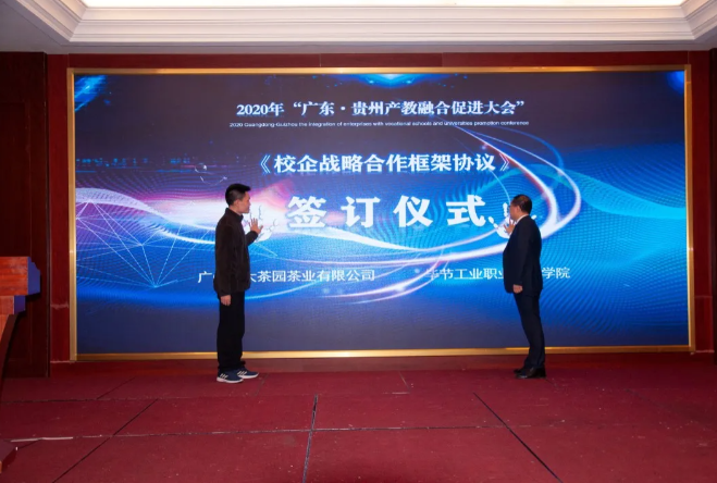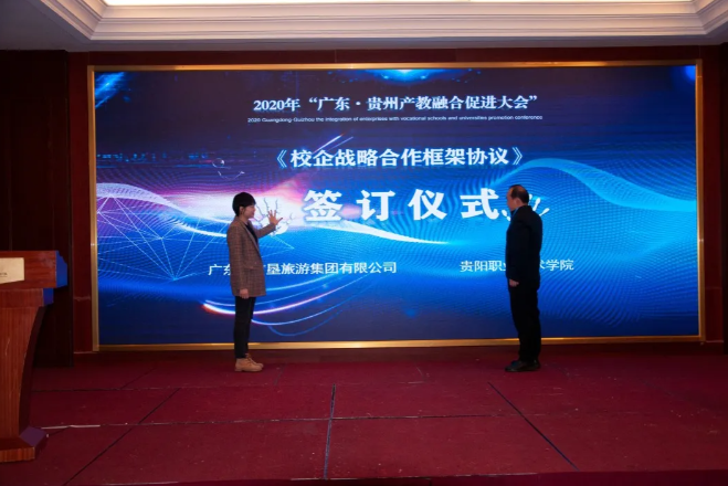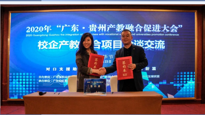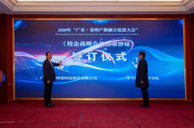 東西部協(xié)作,產(chǎn)教融合助發(fā)展。對(duì)深入推動(dòng)產(chǎn)教融合、校企合作、專業(yè)布局緊扣產(chǎn)業(yè)發(fā)展、教育教學(xué)改革貼近人才培養(yǎng)需求等發(fā)揮了助推作用,將使貴州職業(yè)教育深化產(chǎn)教融合、校企合作打開(kāi)一個(gè)全新的局面。 貴州省教育廳一級(jí)巡視員鞠洪在會(huì)上表示,隨著中央、省一系列政策、措施的出臺(tái)實(shí)施,產(chǎn)教融合發(fā)展將迎來(lái)更好的發(fā)展機(jī)遇。廣東·貴州產(chǎn)教融合促進(jìn)大會(huì)的召開(kāi),為我省各職業(yè)院校與廣東省的各行各業(yè)優(yōu)質(zhì)企業(yè)和職業(yè)院校交流溝通搭建了一個(gè)廣闊的平臺(tái)。期待通過(guò)這個(gè)平臺(tái),粵黔兩地能更大范圍、更寬領(lǐng)域、更深層次開(kāi)展合作,實(shí)現(xiàn)廣東市場(chǎng)+貴州產(chǎn)品,廣東研發(fā)+貴州制造的融合發(fā)展。 廣東輕工職業(yè)技術(shù)學(xué)院黨委書記杜安國(guó)表示,落實(shí)廣黔結(jié)對(duì)幫扶舉措,發(fā)揮企業(yè)與教育的互促力量,在廣東·貴州產(chǎn)教融合促進(jìn)大會(huì)的廣闊平臺(tái)上,為校企合作牽線搭橋,共同建立長(zhǎng)期緊密的合作關(guān)系,促進(jìn)職業(yè)教育高質(zhì)量發(fā)展,實(shí)現(xiàn)職教幫扶促發(fā)展,產(chǎn)教融合謀新篇。 發(fā)揮自身優(yōu)勢(shì),助力合作共贏。畢節(jié)市人民政府副市長(zhǎng)胡愛(ài)斌在會(huì)中坦言,落實(shí)東西部扶貧協(xié)作,畢節(jié)要盡其資源,提升兩省兩市的產(chǎn)教契合度,圍繞自身的優(yōu)勢(shì),加強(qiáng)廣東企業(yè)和貴州教育的結(jié)合優(yōu)勢(shì),為畢節(jié)打造更多的“畢工強(qiáng)將”、奮力人才! 會(huì)上,廣東省向貴州職業(yè)院校捐贈(zèng)阿里云智慧校園3.0系統(tǒng),廣州市億科計(jì)算機(jī)公司向畢節(jié)工業(yè)職業(yè)技術(shù)學(xué)院捐贈(zèng)智慧黨建系統(tǒng);相關(guān)企業(yè)與院校簽訂人才專業(yè)培養(yǎng)、訂單班、校企戰(zhàn)略合作、產(chǎn)教融合項(xiàng)目20余項(xiàng)。廣東星徽精密制造股份有限公司代表參會(huì)企業(yè)進(jìn)行發(fā)言,10余家企業(yè)進(jìn)行了產(chǎn)教融合案例分享。 會(huì)中,許多學(xué)校和企業(yè)單位都精彩紛呈的展示了“自家”的優(yōu)勢(shì)及未來(lái)發(fā)展。很多校企單位在行程中便互相洽談、簽約,這些成功的簽約對(duì)產(chǎn)教融合,校企合作有了更深的意義,推進(jìn)了產(chǎn)教融合,校企合作,校校合作的進(jìn)程,引領(lǐng)時(shí)代的新篇章。 廣東?貴州產(chǎn)教融合促進(jìn)大會(huì)在畢節(jié)召開(kāi),既是山與海的對(duì)話,更是心與心的交流。職業(yè)教育的目標(biāo)是培養(yǎng)技能型的人才,深化走產(chǎn)教融合,校企合作之路,加強(qiáng)產(chǎn)教融合,校企合作,達(dá)到互惠互利,合作共贏的優(yōu)勢(shì),共同培育新時(shí)代高技能人才。